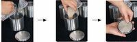 把球磨罐中的物料和磨球倒入一個小塞中,用塞子分離磨球和物料,再用塞子分離一次物料。最后把需要的物料倒入樣品袋中。
