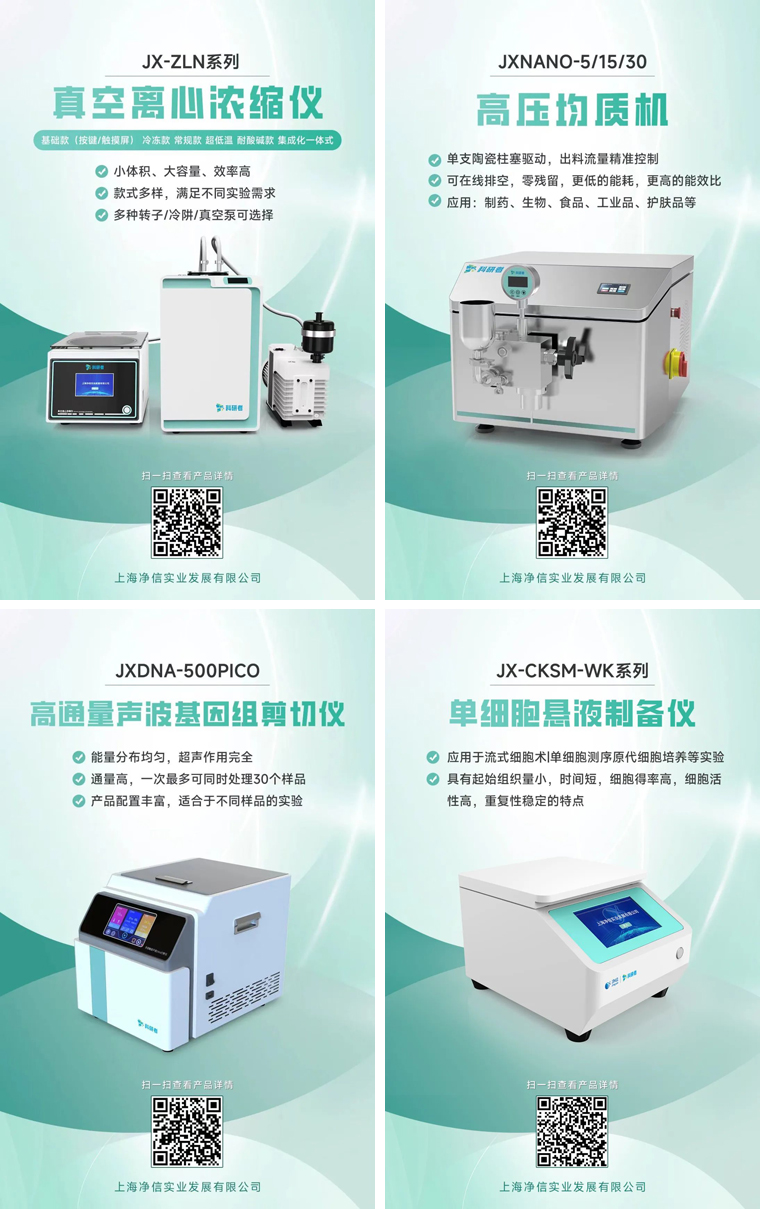 十幾年來(lái)凈信不斷進(jìn)行自我創(chuàng)新與突破。通過持續(xù)優(yōu)化產(chǎn)品性能和提升服務(wù)質(zhì)量,我們實(shí)現(xiàn)了從單一產(chǎn)品到多元化發(fā)展的轉(zhuǎn)變,拓展了市場(chǎng)影響力。上海凈信科研者系列產(chǎn)品也在上市推廣中!真空離心濃縮儀、高壓均質(zhì)機(jī)、單細(xì)胞懸液儀、高通量聲波基因組剪切儀。